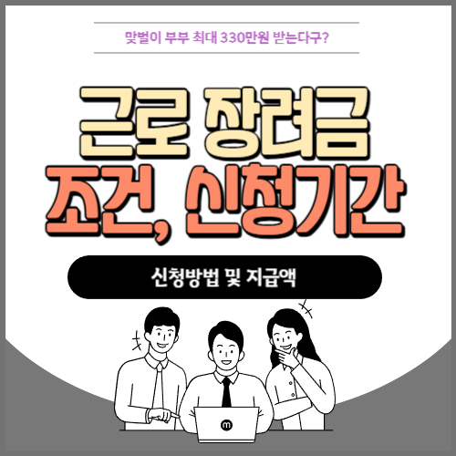근로장려금이란 재산과 소득이 일정 금액 미만인 근로자, 사업자, 종교인 들의 근로를 장려하고 소득을 지원하는 제도입니다. 일정 수준의 생활 수준이 되지 못하는 사람들에게 정부에서 지원금을 주는 제도 라고 생각하시면 됩니다. 하지만, 아무나 지원금을 주면 안되니 일정한 기준이 있습니다. 가구당 소득 수준과 재산상황을 고려하여 조건이 충족되면 지급하게 되며 맞벌이 부부가 받을 수 있는 최대 지원금은 작년보다 10% 증가하여 330만원입니다.