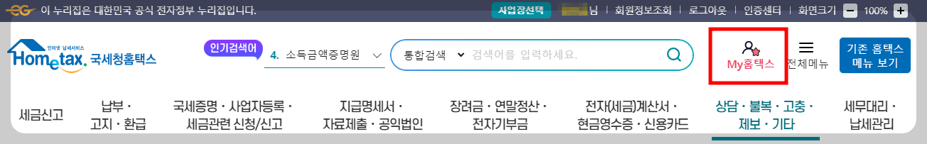 3. 홈택스에서 근로소득 원천징수 영수증 발급방법