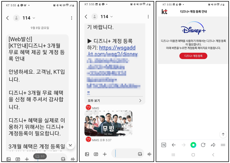 현재 디즈니플러스와 KT가 진행중인 무료체험은 KT 매장을 방문한 KT모바일을 사용하는 사람에게만 국한됩니다. 19세 이상으로 통신사 KT를 사용하시는 분이라면 가까운 매장에 들러서 확인만 하시면 신청이 가능합니다. KT매장에서 보내준 메세지를 이용해서 디즈니플러스 회원가입을 하면 됩니다.